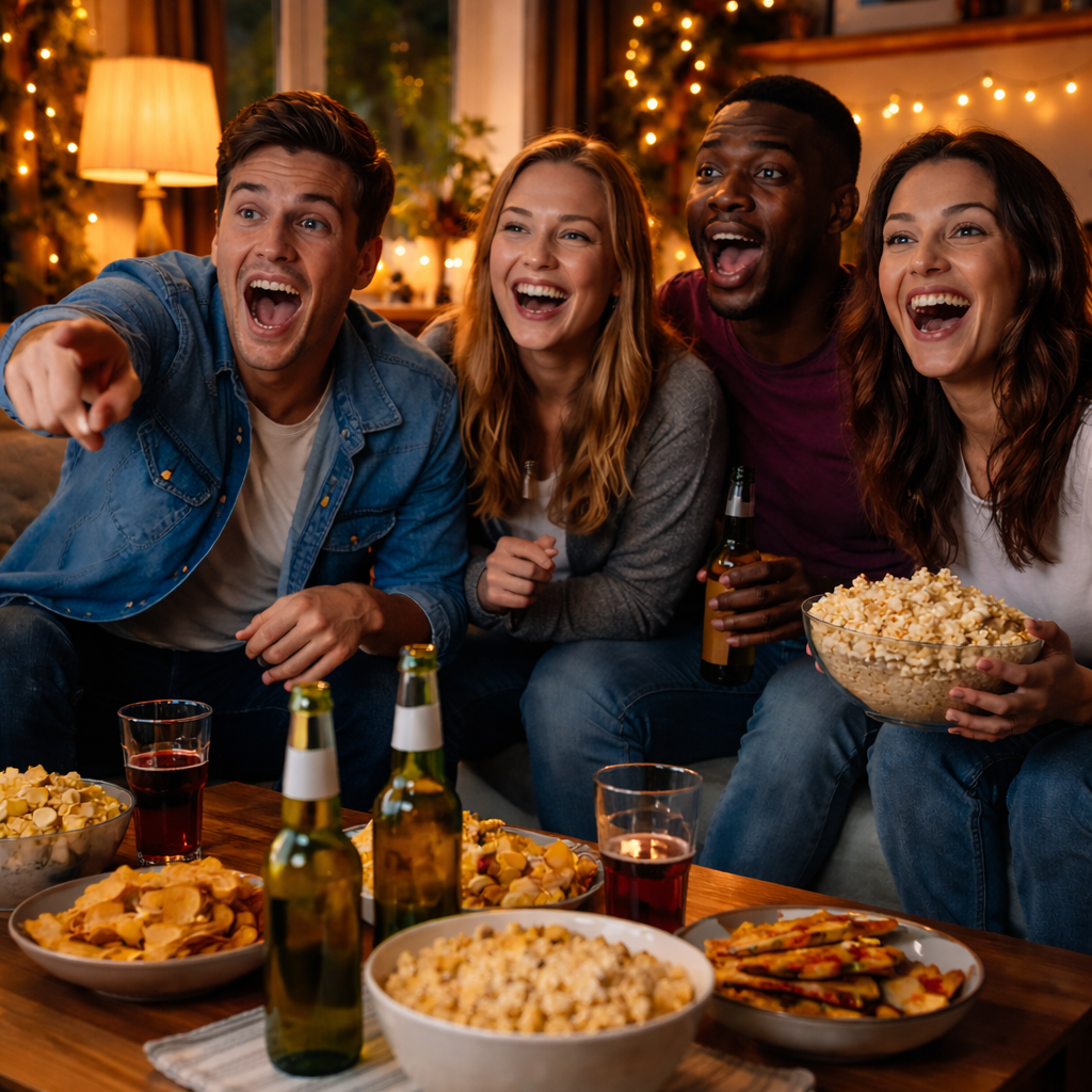 Enjoy a charming, cosy app design that enhances your TV night atmosphere. ** Free to play — only the host needs a subscription